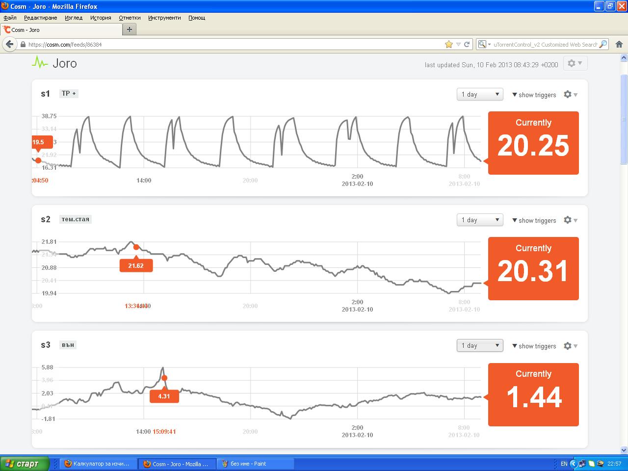Измина и януари/сравнително топъл/ разхода е ТП-135лв+бойлер-15лв=150лв=2м2 дърва или 430кг пелети.Мисля че вече налучках настройките отношението раб./почивка е около 1:2 30:60мин, а вчера през деня достигна до 1:4 22:88мин.Единствения проблем ми е Ардуиното и продължавам да търся някой който може да помогне :partyman: