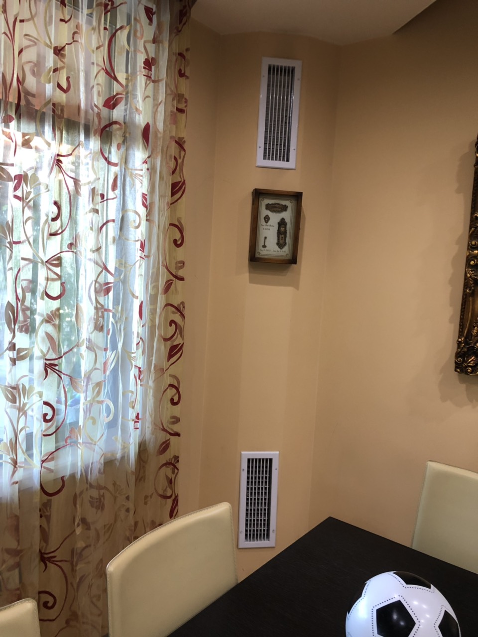 Втори вариант -канален климатик с въздуховоди влизащи в общи решетки.За да се контролира различна температура във всяка от стаите се слагат термостати.