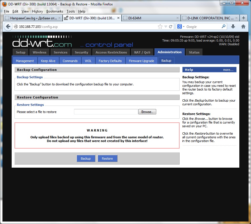 После ако нещо си "забрави" настройките рутера - зареждаш му този файл и всичко е както преди.