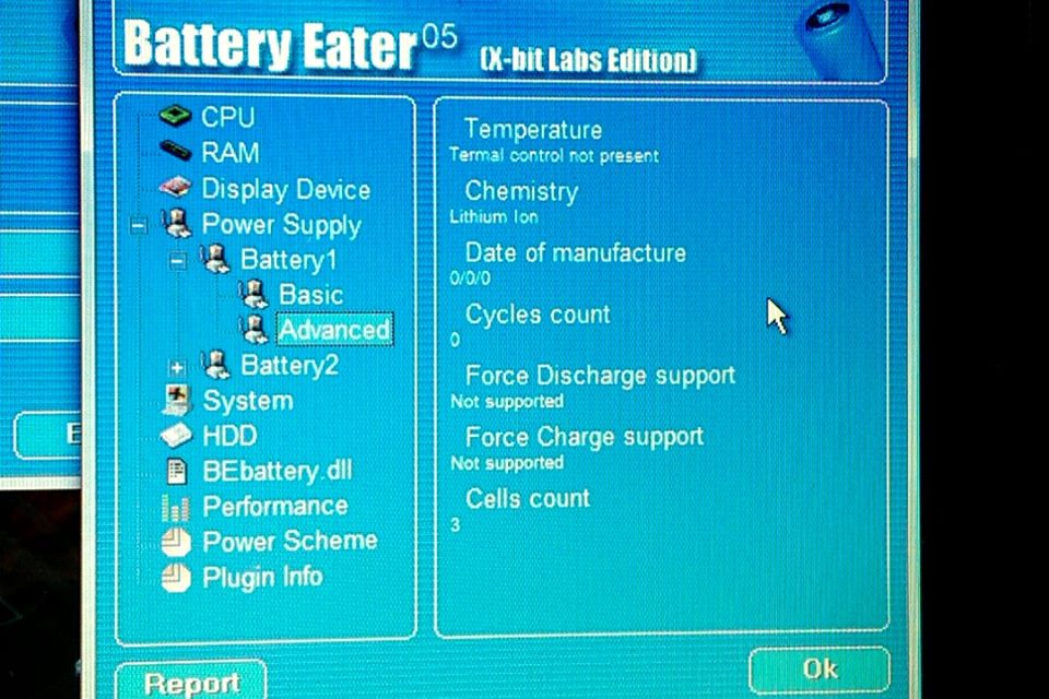 Батерията на лаптопа ми издържа около 30 секунди, след което той се изключва. При тази ситуация реших да импровизирам като отворя батерията и сменя клетките, които са с изчерпан ресурс. След като я отворих проверих напрежението - 12.25V, което ме учуди. При тази ситуация си направих импровизирана пробна лампа с крушка от автомобил(12V 15W), за да проверя дали има някакъв ток и светна ярко. Това отговаря на около 1/3 от консумираната мощност, но нямах повече крушки за новия ми уред