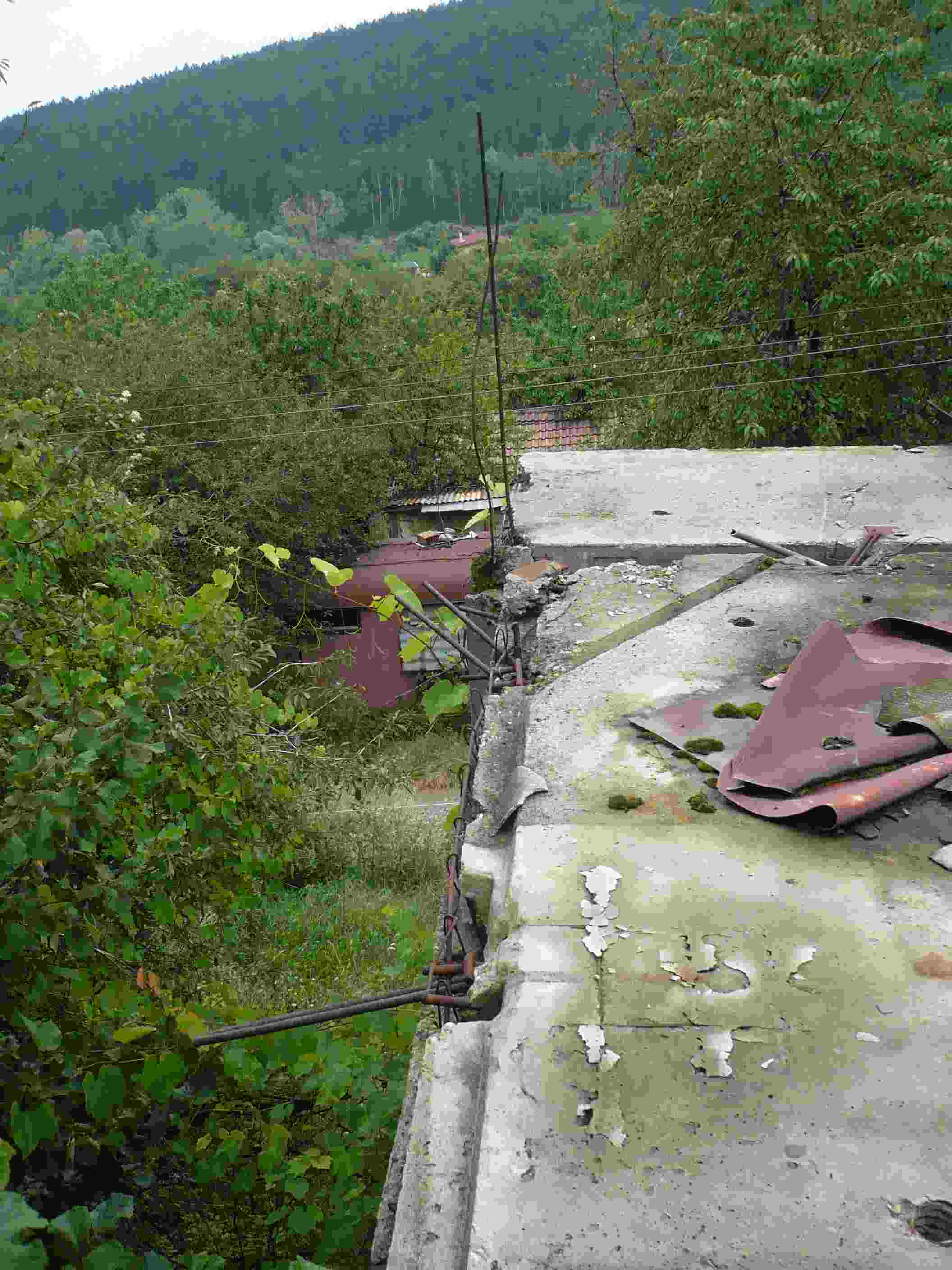 2 Правите дървена (метална) скара захваната с дюбели към бетона и върху нея покривате с гофрирана ламарина, ондулин, етернитови листове и т.н.