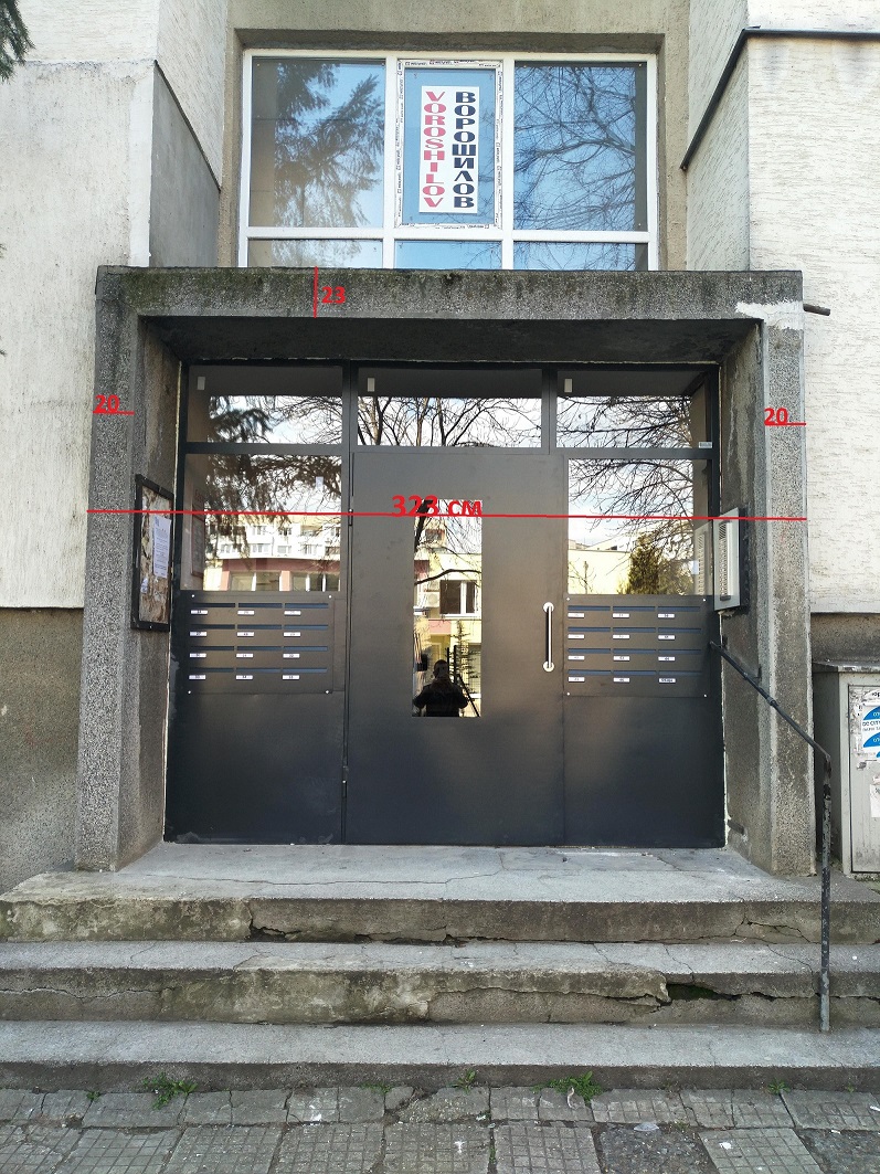 Здравейте майстори и ентусиасти. След немалко мъки успяхме да сменим входната врата на входа - за сега всички (почти) са доволни. Но новата врата контрастира неприятно с напуканите и изронени стълби.