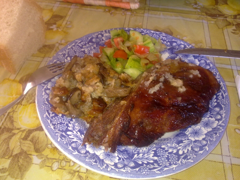 Сега чакам да хване коричка и да направя последните снимки. Ще ги пусна по-късно този ден, защото непосредствено след последната снимка ще трябва да хрускам топлата коричка и да преглъщам едри сочни мръвки с огромни глътки вино или бира, според това какво ще ми се допие.