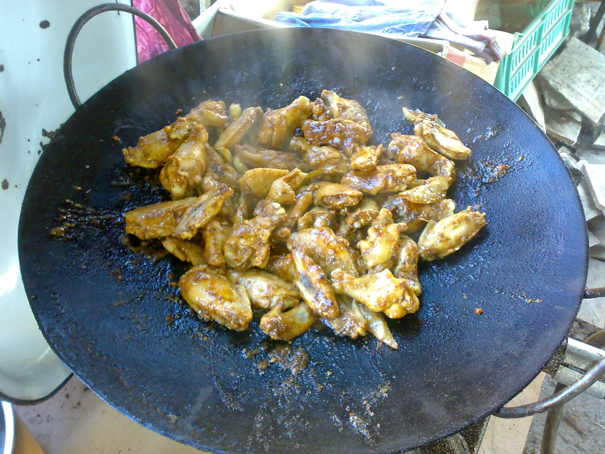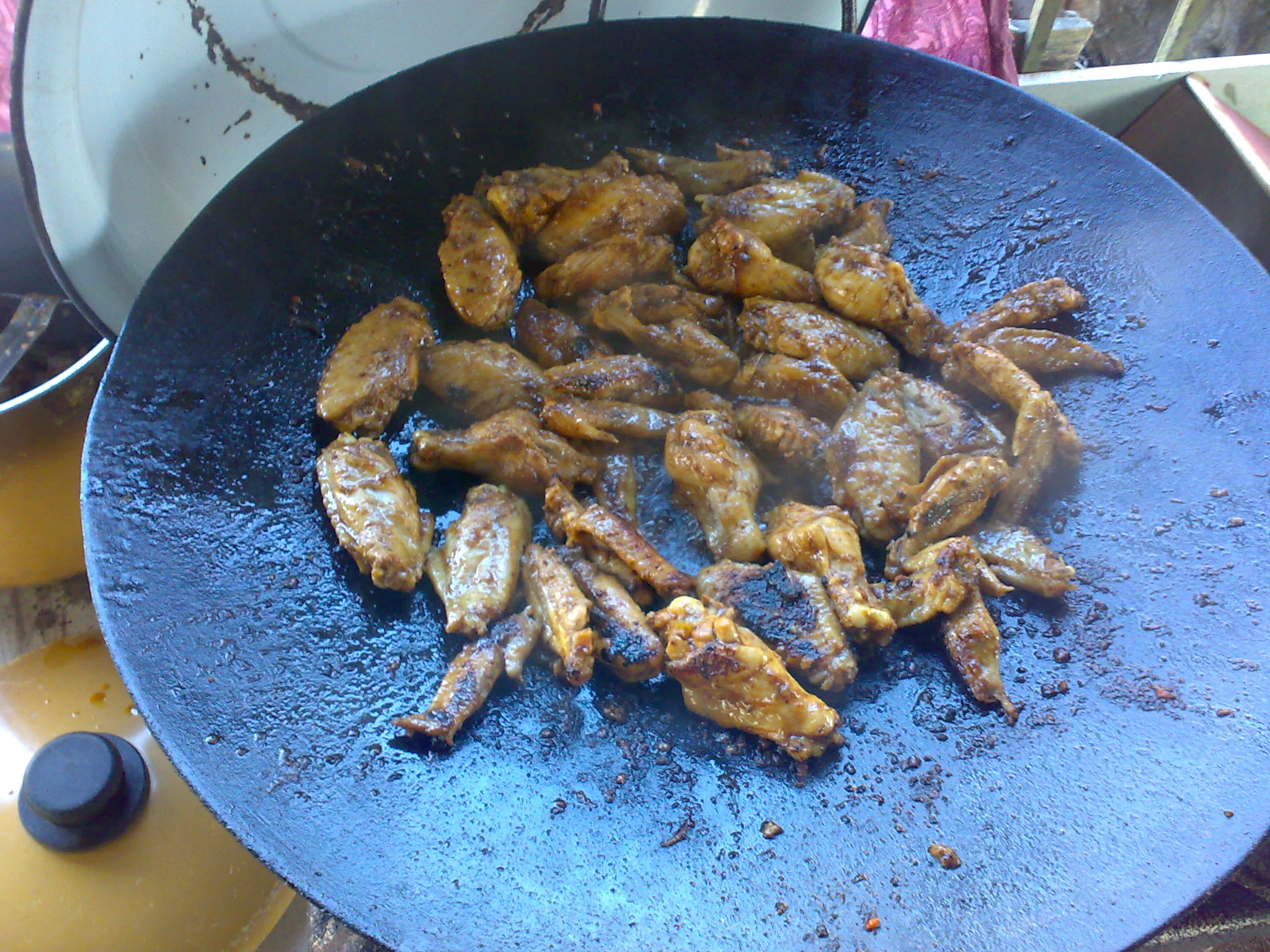 Нарязваме крилцата на 3 и ги мариноваме за няколко часа, най-добре е като се приготвят вечерта за следващия ден. В подходящ съд слагаме крилцата заедно с всички продукти и объркваме добре все едно че месим тесто. Оставяме да престоят в хладилника. На другия ден загряваме валандара и изсипваме всичко. Запържваме под капак до зачервяване около 30 минути.