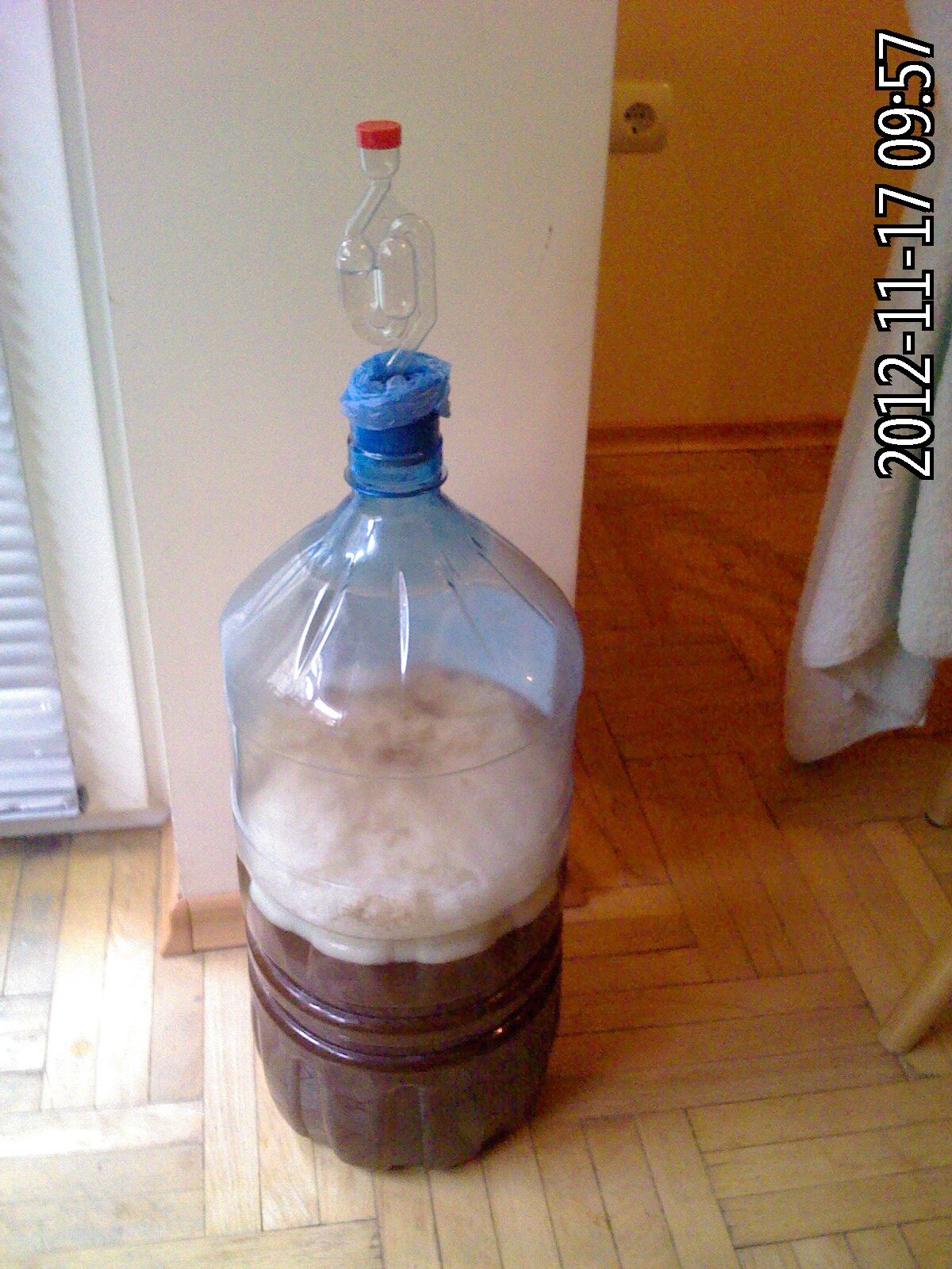 След една седмица ферментация (само първите два дена е бурна с видими признаци) следва бутилиране с добавка на 1% захар за газировка (на 10л. 100гр. захар).