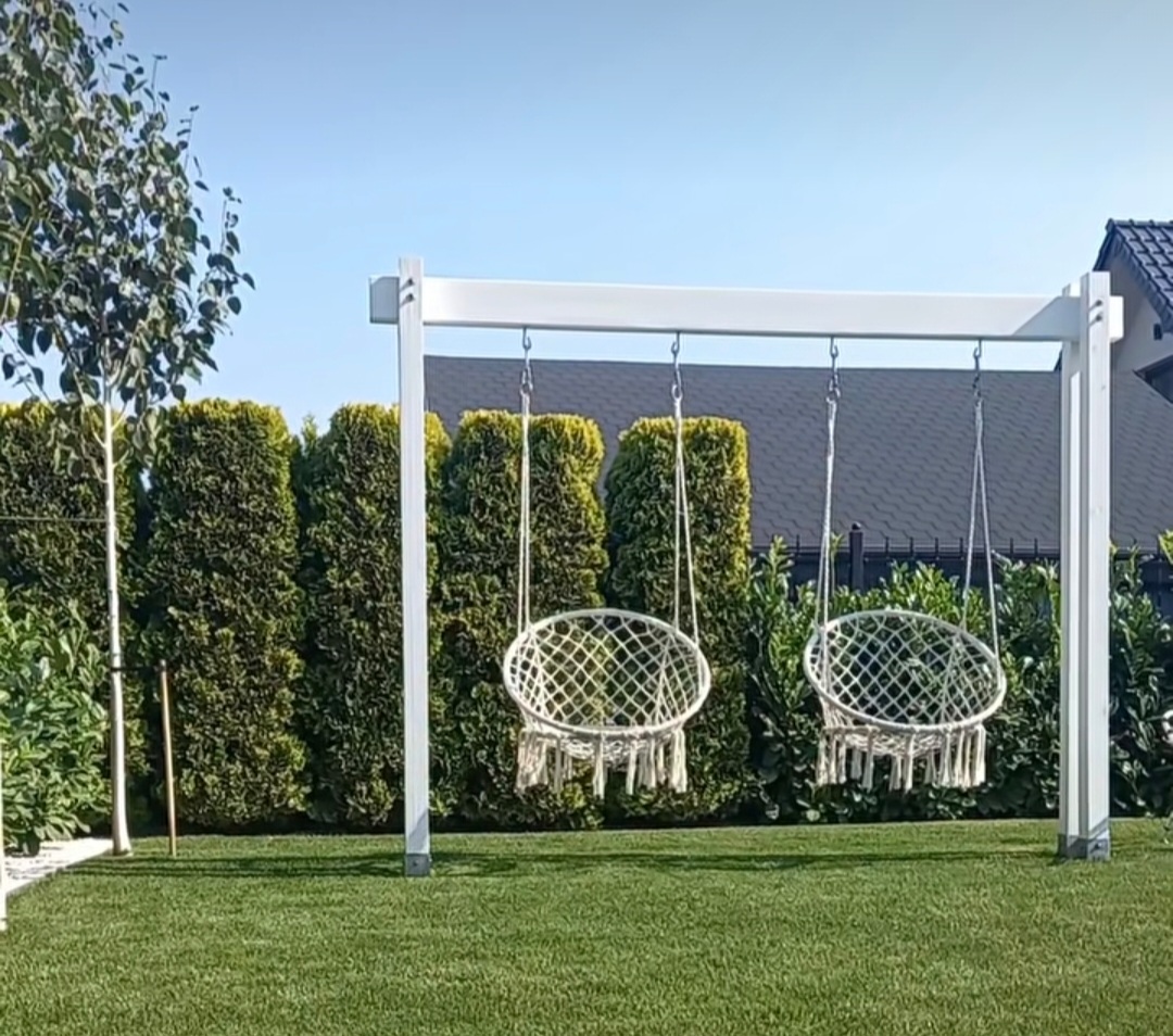 Забележи, че на клипа от инстаграм са 3 греди в L формация, така е доста по-стабилно защото перпендикулярното рамо ще стабилизира когато се люлеете на другото. Лично бих направил тази конструкция. Даже ако се клати може да сложите диагонал и дори да направите нещо като пергола и да сложите хамак на диагонала за половнката ти :) просто разсъждавам...