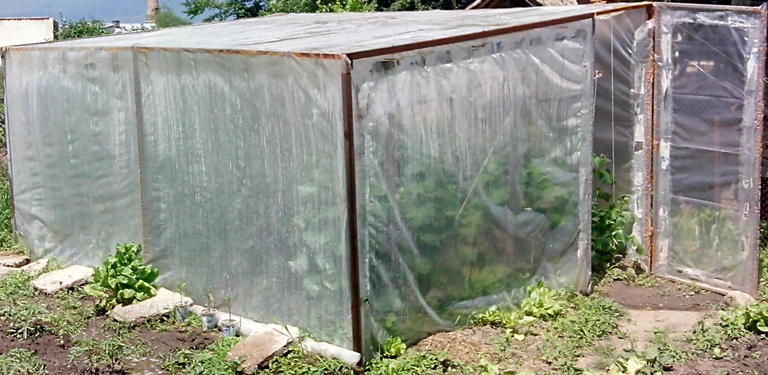 Моя го направих едноскатен (с идеята за абсолютен минимум разходи на материали). Разглобяем е точно като палатка. Освен това предната "стена" и покривната са предвидени да се отварят (навиват) при "оправяне" на времето. Все ми се струва, че е добре при възможност зеленчуците да се огряват от пряка слънчева светлина?