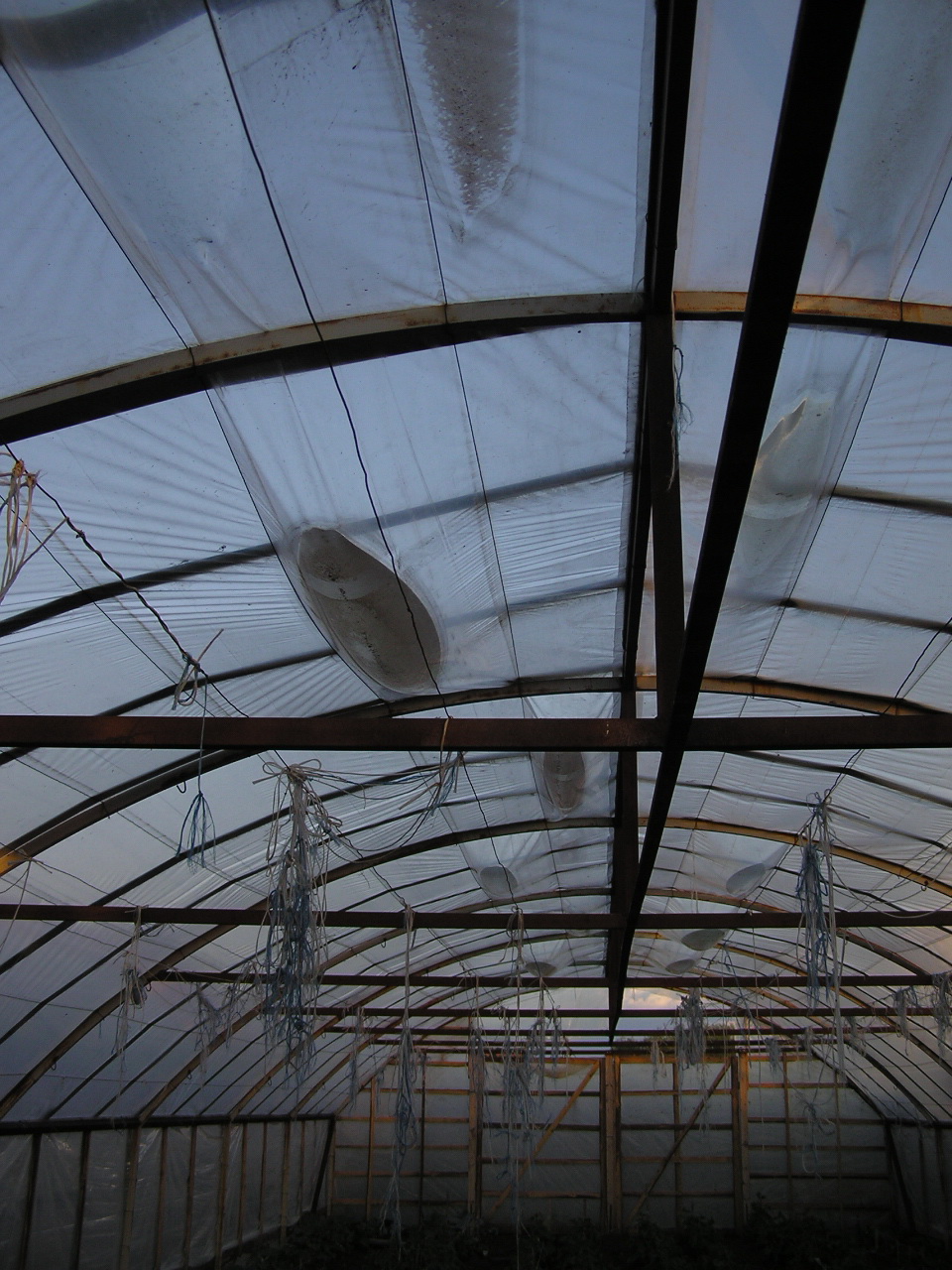 Моя го направих едноскатен (с идеята за абсолютен минимум разходи на материали). Разглобяем е точно като палатка. Освен това предната "стена" и покривната са предвидени да се отварят (навиват) при "оправяне" на времето. Все ми се струва, че е добре при възможност зеленчуците да се огряват от пряка слънчева светлина?