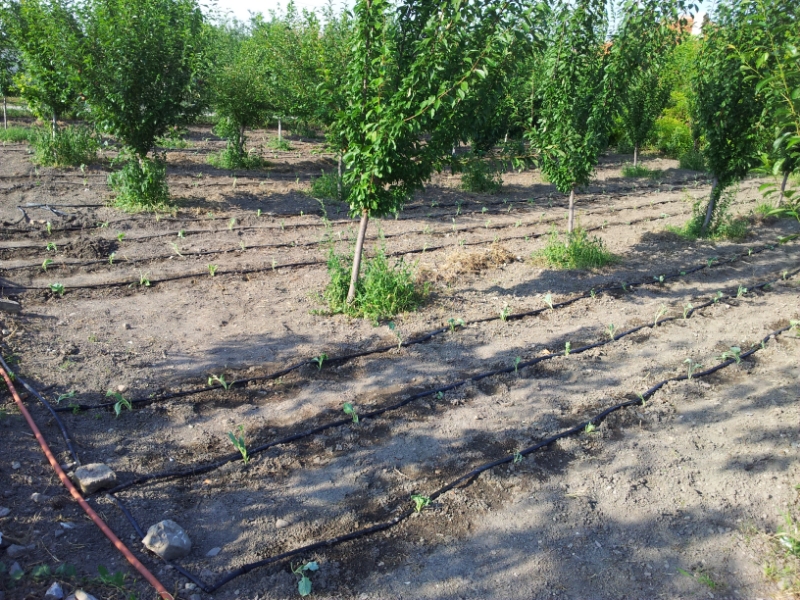 Ако поливаш без капково можеш да поливаш м/у редовете. То водата се просмуква на вътре. Стимулира по дълбока коренова система. А пък на моркови, лук, чесън е много по лесно да нарастват. Със зелено съм нарисувал сеното дето го слагам отдолу.