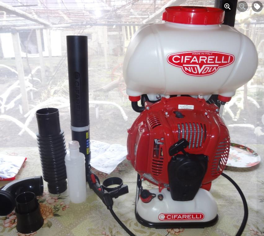 Третият вид с фунията е Сifarelli- М 1200. Става идеално за дървета и когато всичко се зашуми - Струята е толкова силна, че обръща листат от всички страни. Разходът е нормален - колкото електрическата.