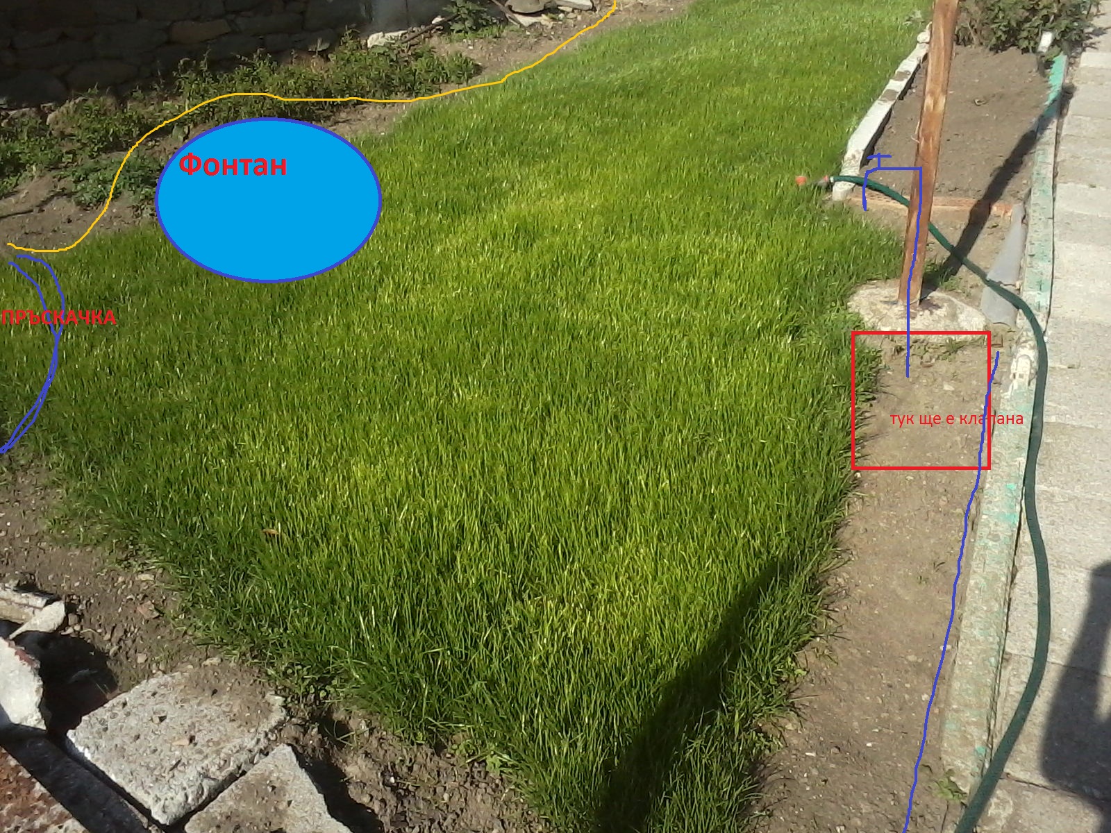 Другото е че с един разпръсквач не можеш да поливаш място с формата на правоъгълен триъгълник. Просто искам да ти спестя труд и разочарование.