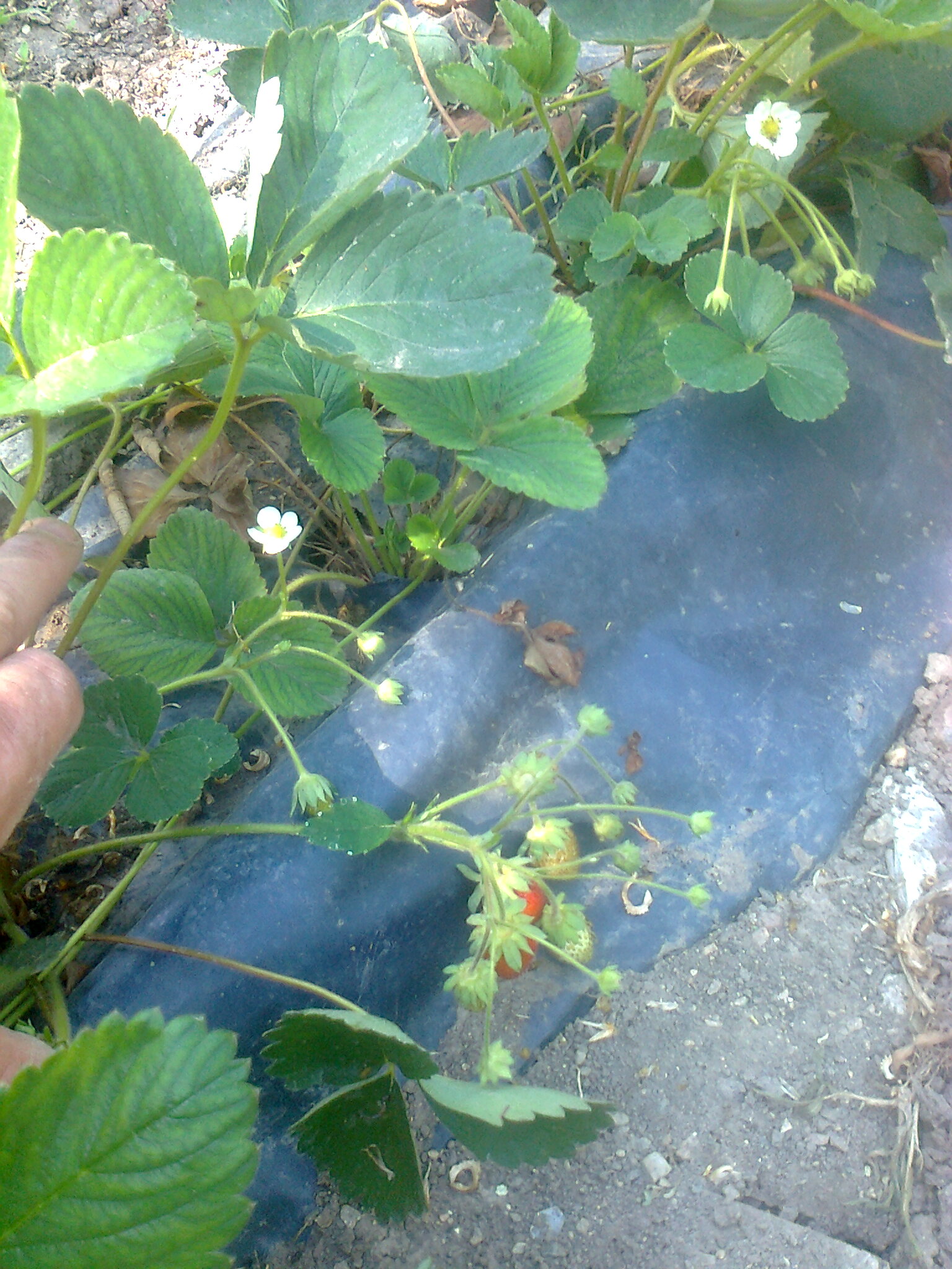 4-Голяма грешка когато бяхя засадени ,остана място от реда и допълнително засях нашенски.Тази пролет нашите дадоха малко едри ягоди и спряха.Френските в момента цъфтят и вързват.