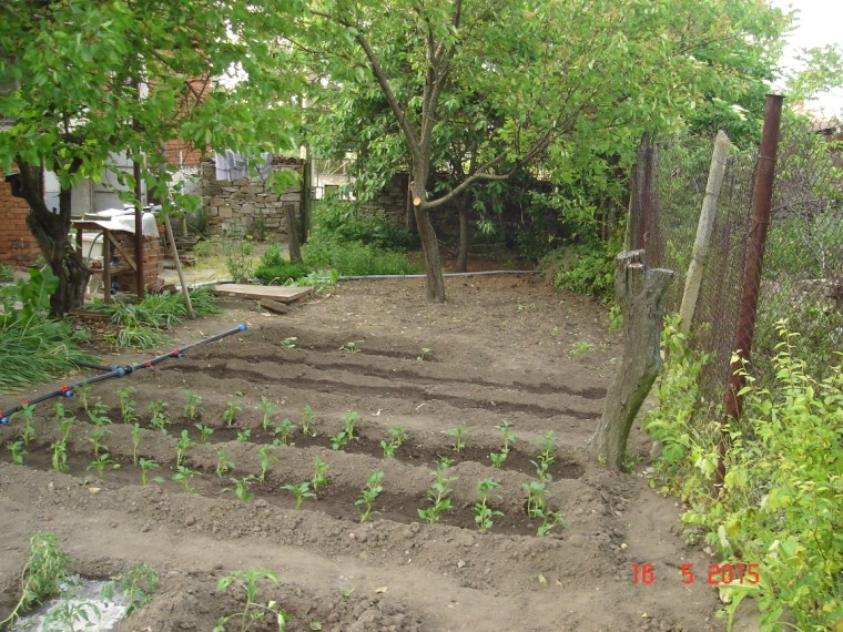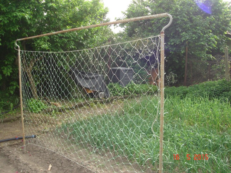 И за да не съм офтопик- и аз ползвам зелената пласмасова мрежа като на снимката по- горе за краставички. За доматите- на всеки корен- дървен кол. Имам такива от акациево дърво, които се ползват вече над 10 години.