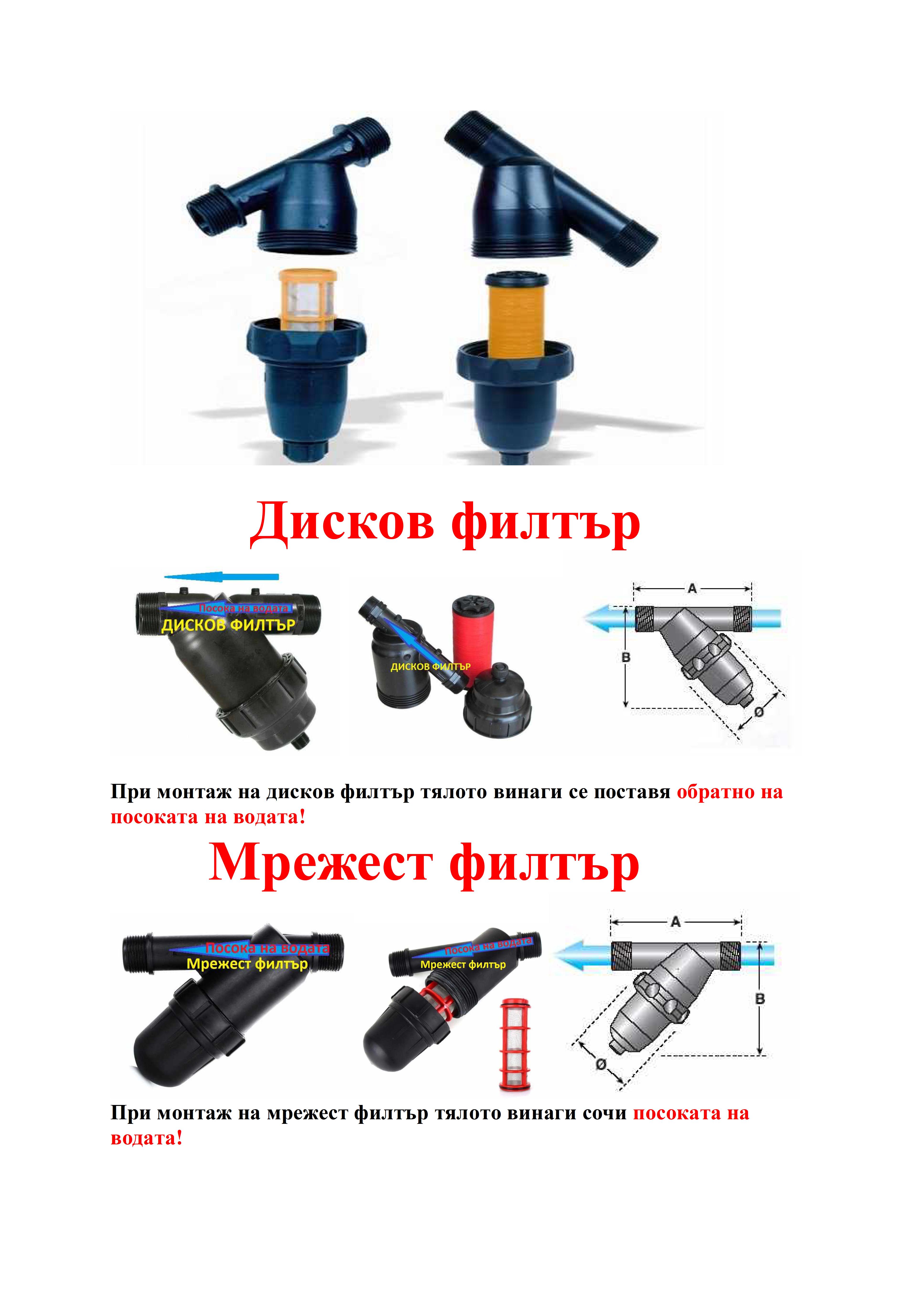 пп. "При монтаж на дисков филтър тялото винаги се поставя обратно на посоката на водата!"