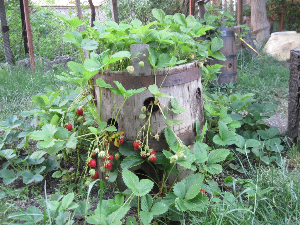 Ние на вилата имаме един доста интересен ягодарник-подобен на ацтекска пирамида :) . Т.е. конструкцията е на 3 етажа, най долния е квадрат със страна около 2м, следващия пак квадрат със страна около 1,4м и най горния е със страна около 0,8м. Дъските са около 20см широки. Слага се най долната част, насипва се пръст почти до ръба, след това втората и т.н. Посредата е забита каналджийска тръба, която е пробита по цялата си дължина и така се поливат всичките етажи на конструкцията. Цялата конструкция не заема много място, красиво е и е доста ефективно. Надявам се идеята да хареса и на някой друг съфорумец и да я реализира в градината си :)