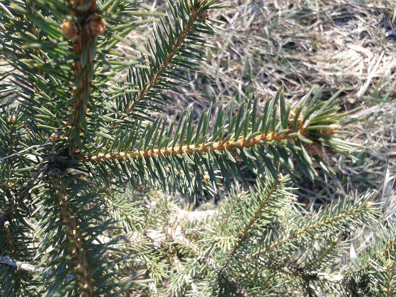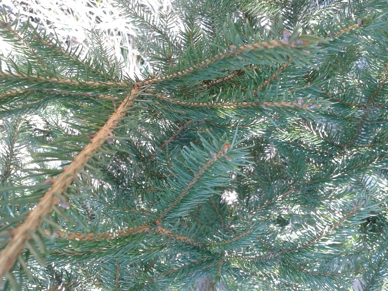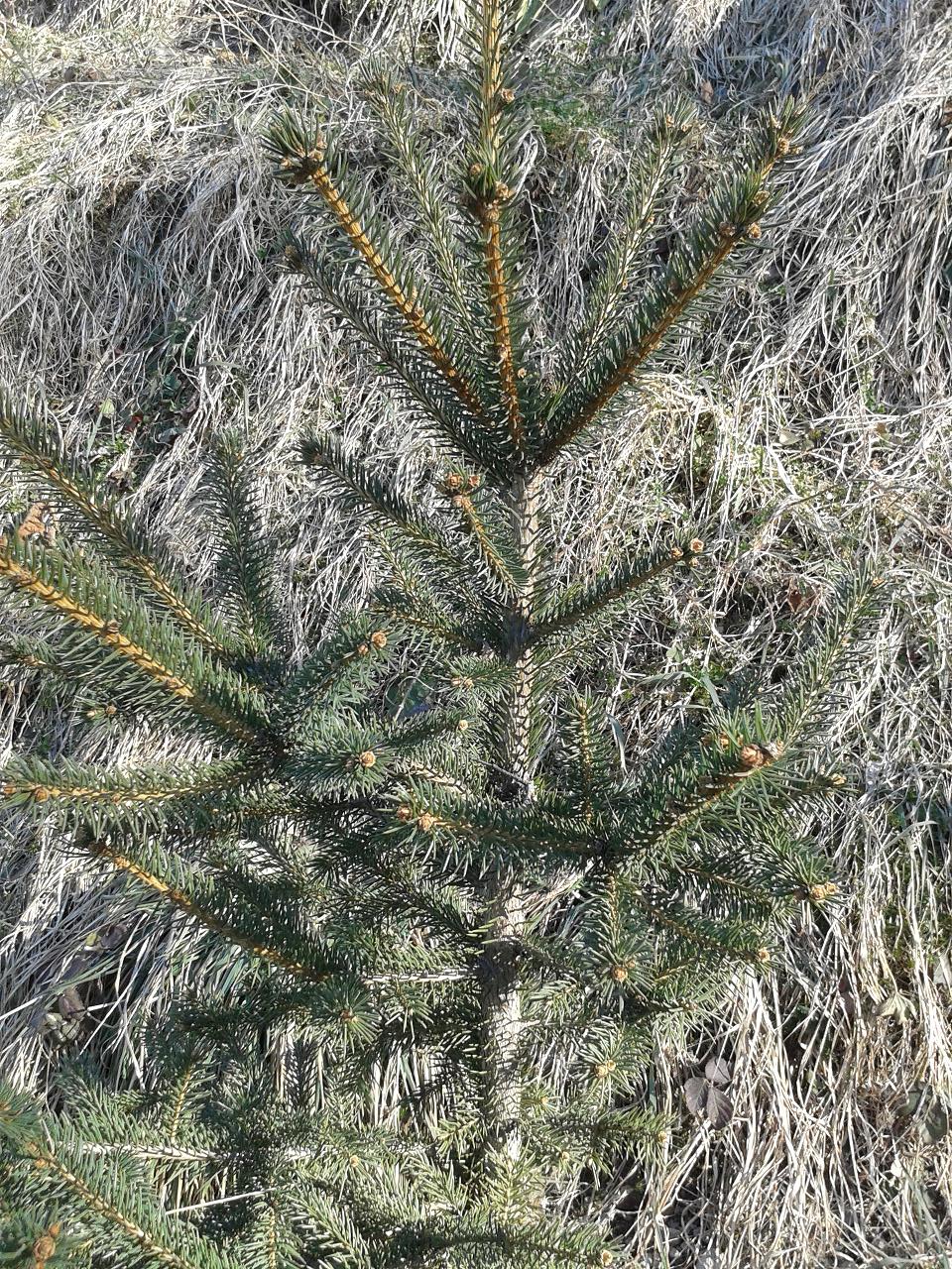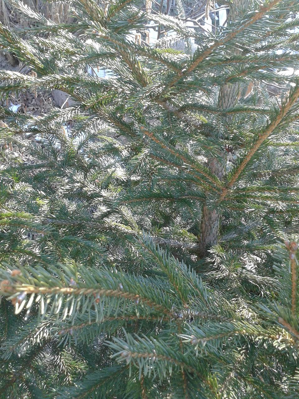 3-то: това е купувано от пазара, като елха, бавно расте и е с по една игличка на чеп. Прилича ми на смърч, изцяло зелени са игличките.