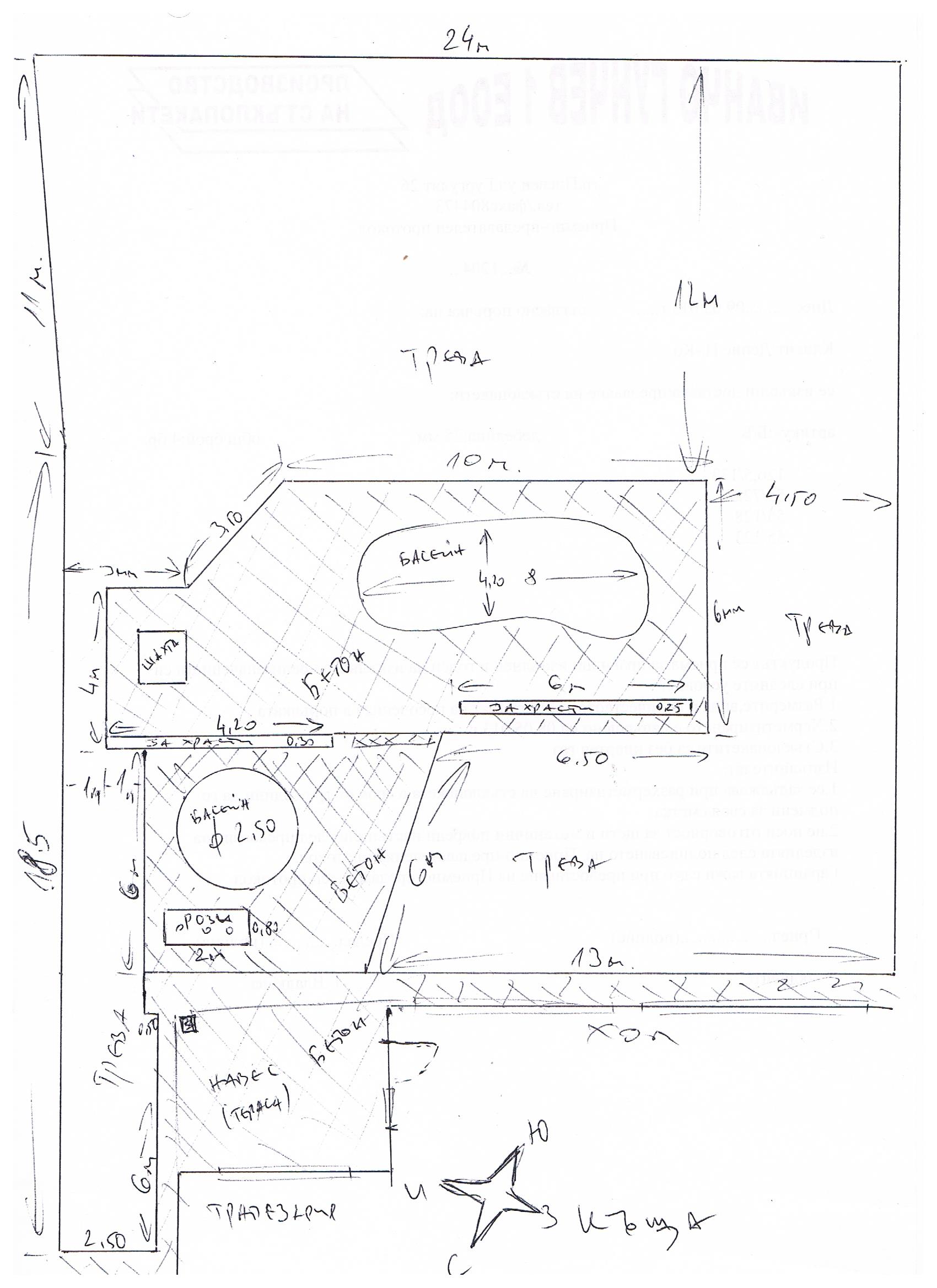 Долу в ляво,жената иска да си засади подправки,Но е сянка от къщата.Останалия двор е слънчев.