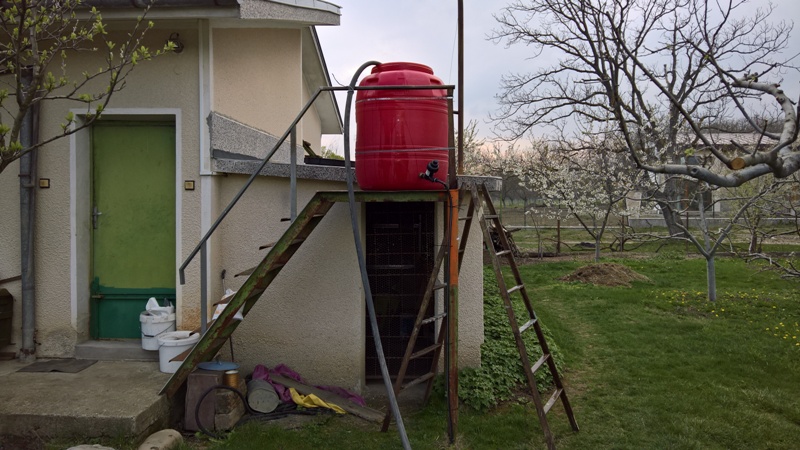 Стойката за бидона (1000литра) ще е готова тези дни,ще го поместя до оранжерията,повдигнат на метър,от там с черна тръба ще направя магистралка с четири извода,за всеки ред.И на този завой поднесох.
