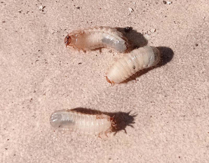 Това са ларви на майски бръмбар. Изключителна гад. Изгризва корени на почти всичко , следва съхнене без видима причина.