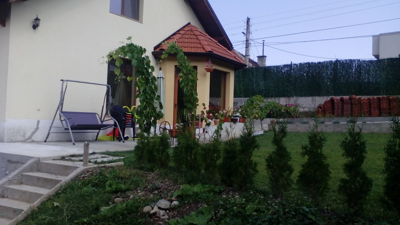 Нещото, което промених е, че сложих подпорна стена и навес от едната страна. Дали не задържа повече вода под туята сега от стената? Навесът прави сянка и пази от вятър. Има пръскачки за тревата да поливат лятото, но мястото е с наклон към туята и навеса.