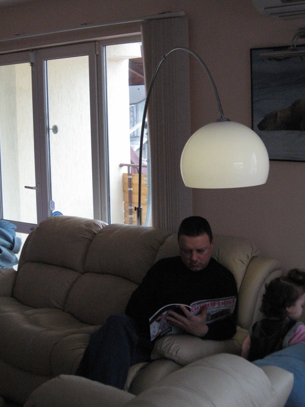 Ето две снимки от вкъщи, сложил съм я зад дивана, така не си удрям главата в нея при ставане, и не заема никакво място, четенето е приятно дори ако хола е със намалено осветление и другите гледат ТV. :yawinkle: