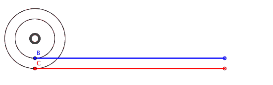 Две концентрични окръжности (с общ център и различен радиус, например R и r, като R>r) изминават еднакво разстояние при едно пълно завъртане - факт!