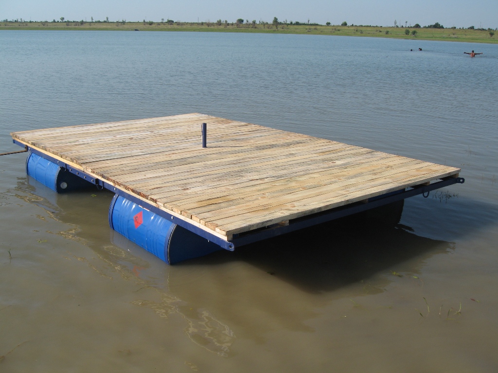 Направих си понтон, който закотвих на 5м дълбочина и на 200м от брега в язовира с 2 бордюра по 120 кг ( за котви ). По средата заварих тръба, в която си слагах чадърчето да ме пази от слънцето. понтончето е 4м на 2.5м, но съм го направил да се разглабя на 2 части( 2.5 на 2 ) за по-лесно транспортиране и носене.Металните части са третирани с материали против ръжда, а дървените с безир против влага. Сутрин отивам с гумената лодка до понтона и почвам риболов.На сянка и с бира потопена на 5 м дълбочина.