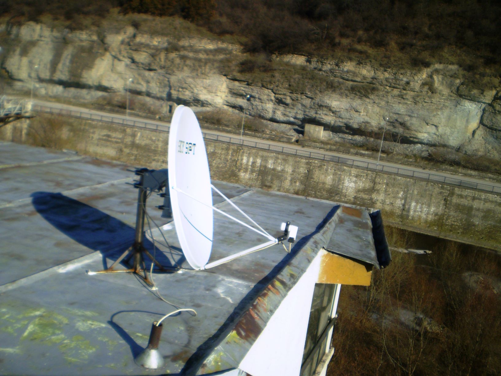 Ще се монтита точно над тръбата от която излиза коаксияла за антената.