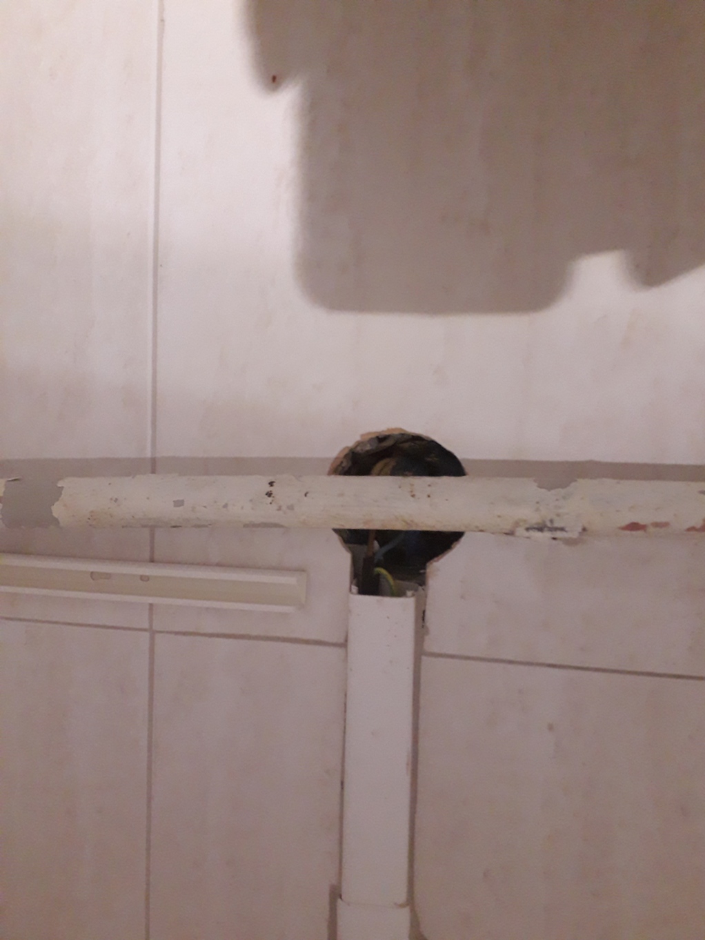 Може и плочкаджиятя да е изпреварил ел.техника и да му оставил да си лепне въпросната плочка. Под строшената плочка има и друга нефугирана. Прилича на недовършено.
