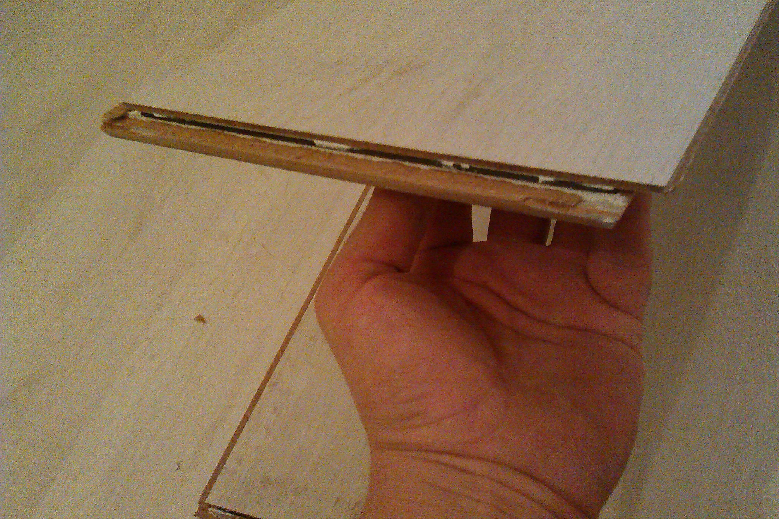 Трябваха ни секунди да достигнем до правилния отговор защо един 12 мм ламинат със закопчаване Мегалок прави ръбчета на късата страна - защото "майстора" е слагал лепило и на късата, и на дългата страна. Видът на лепилото беше установен след оглед на "местопроизшествието" - някакъв полиуретанов уплътнител PU25, дежурно неподходящ за такава цел.