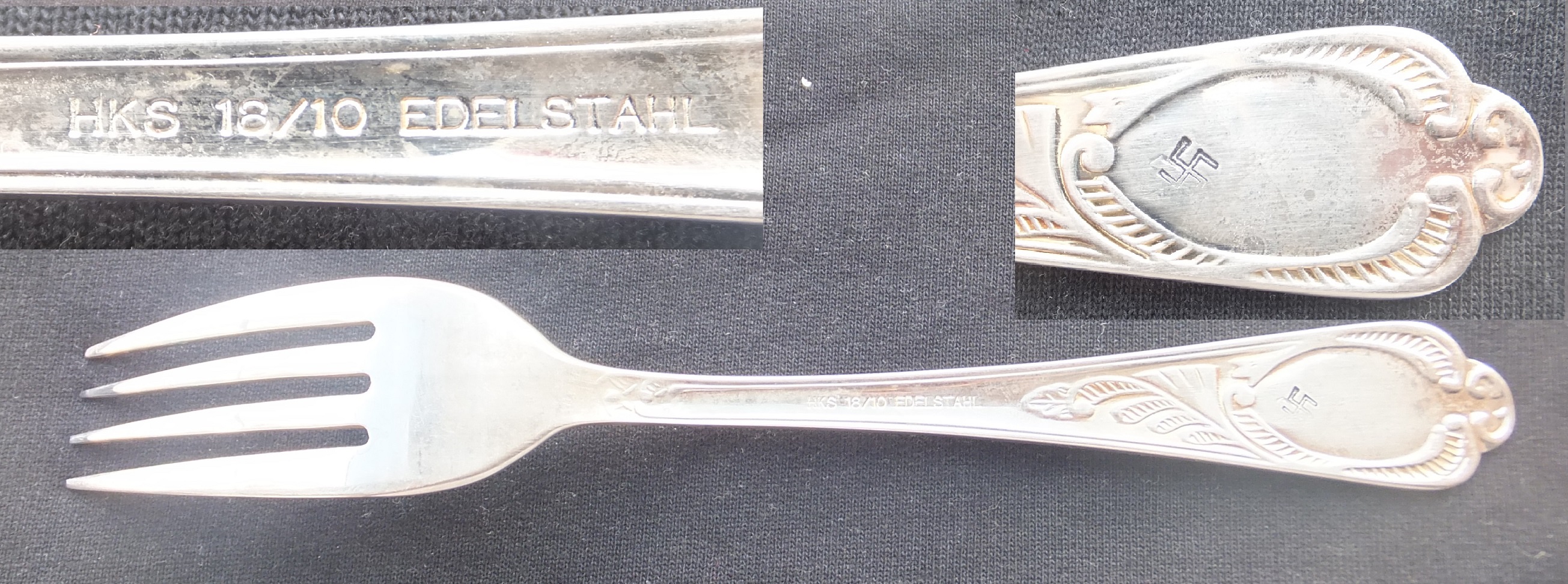 Разгледах други подобни прибори, на разни сребърни или позлатени, които вероятно са били за офицерския състав, щампите са с друг дизайн и много по-качествени. На твоята са правени без много да се стараят, явно някой немски електротехник ефрейтор след войната си е взел приборите и си ги е ползвал :-D