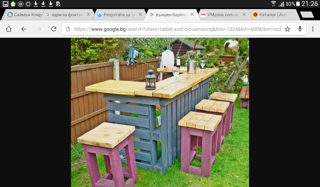 Та всичко започна с идея за външен бар от палети... /този от първата снимка/, но аз реших да е във формата на Г, и впосшедствие плота да е от дъски 5х10 и да са изнесени около 18см навън/дано въпреки лошите снимки да се разбира идеята/...