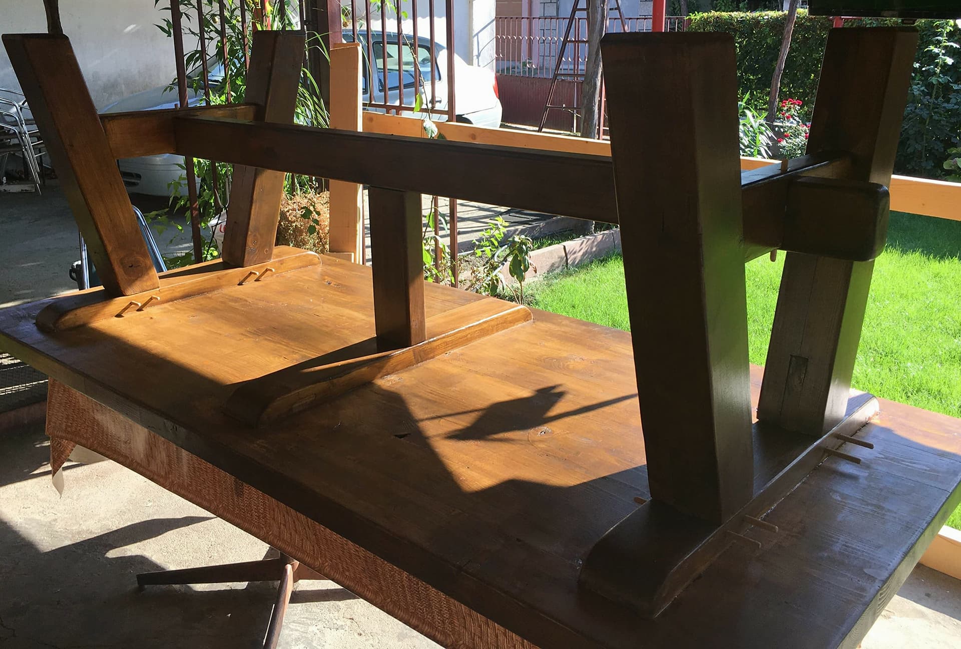 Stoian62 написа:mavryt4o написа:Би трябвало да е добра и скъпа дървесина щом се ползва за муз.инструменти и фурнир.Пътво потренирай на нещо друго после я работи но определено явора ще е за красиви неща не за скована пейка в градината.Не си писал по какво се увличаш та да ти дадем акъл какви заготовки да подготвиш.Ако е за мебели 3и5 см примерно.Аз ако е за мен знам какво искам ще го набича на янове без окрайчване с максималната дължина.Ако е за струговане заготовките са съвсем различни та на такъв въпрос такъв отг.Струговането засега не ме вълнува, по скоро мебели, харесвам масивни маси и столове. Как мислиш, освен 3 и 5см. да набича и на 10 см ? Засега нямам точна идея, правя проект за нова къща и искам градинската мебел, винарната и трапезарията да са от масив. Някои неща държа сам да си ги направя, други ще ги възложа на някой, но всичко искам да е от един вид дървен материал. Досега освен няколко дребни неща, направих и тази маса за градината от чам, на която допуснах много грешки, но се надявам че следващия път резултата ще е по добър.
