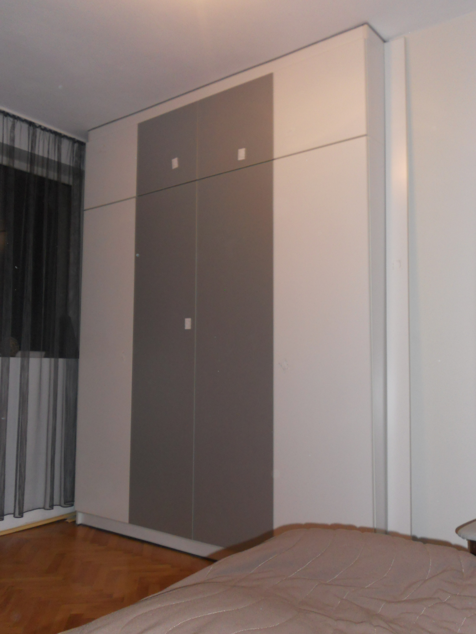 с току що монтирани врати без дръжки (същите тепърва ще бъдат избирани)...цветът не личи много - на снимките сивото ми се струва по-тъмно отколкото е