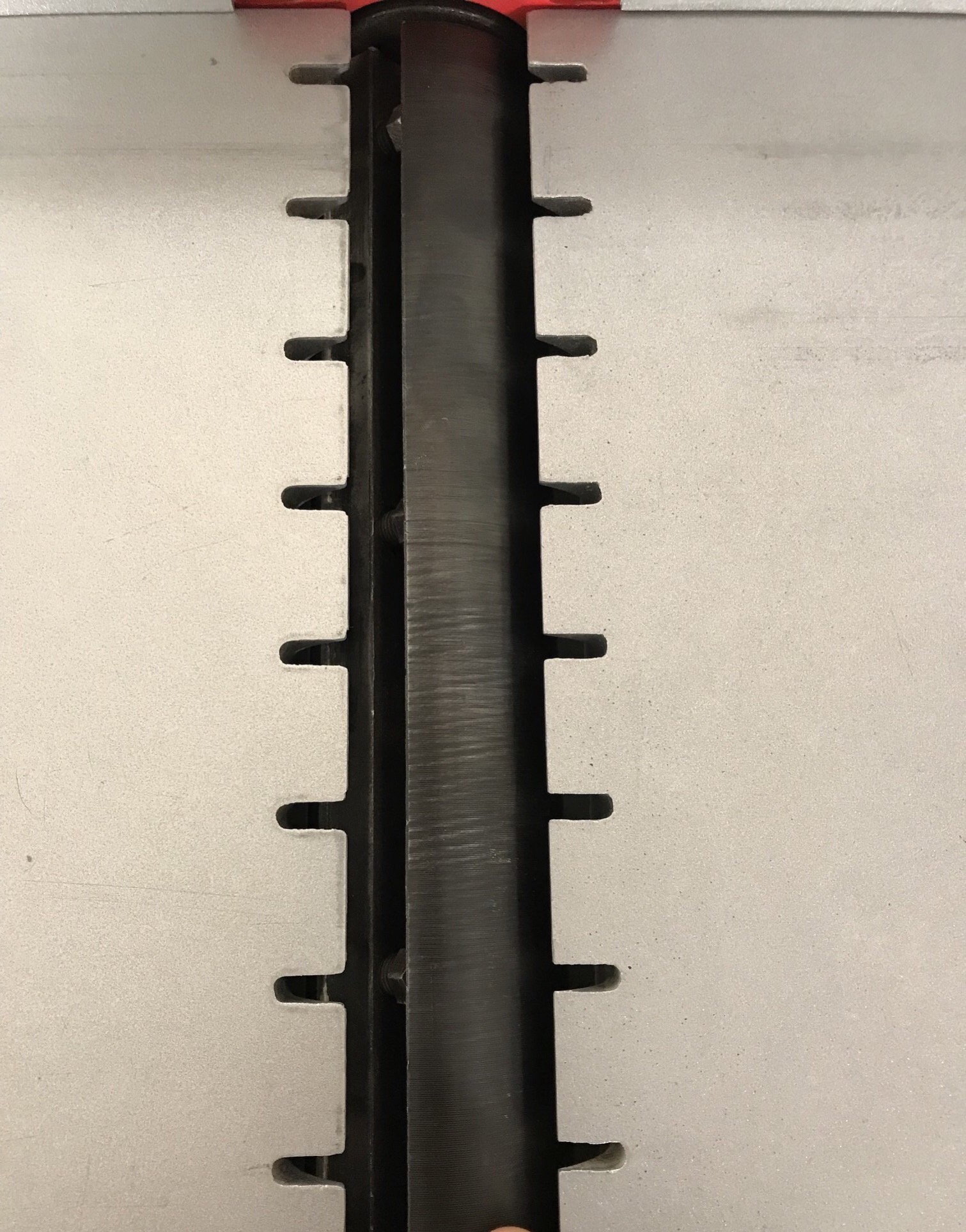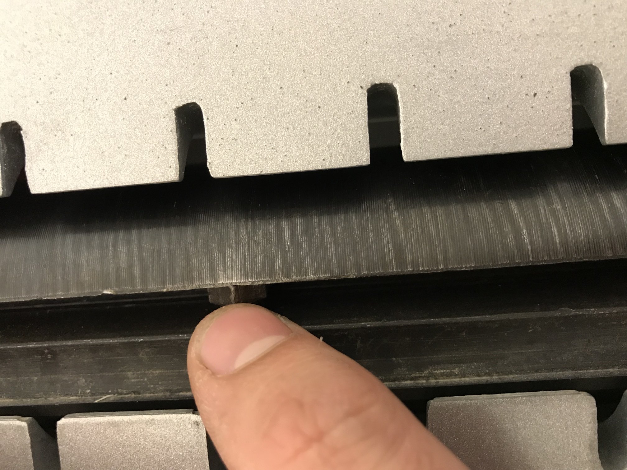 Детайла е дълъг 120см, широчина 5,2см, дебелина 1,7см. Щрайхмуса е на Raider Cwm01. Номиналната широчина на рендосване е 305мм. При задаване на 21мм височина на плота се получават ето тези белези по детайла.