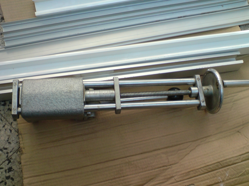 Днес ходих до белканто за ал. плоча 5мм. За съжаление не намерих, но попаднах на друга находка, готов винт с направляващи, идеален за повдигане на фрезата, когато е монтирана на масата. Иска малко преработка за тая цел, но няма да е сложно. Общо с профилите(от гардероби с плъзгащи врати и дограма) дето взех за водачи, легна 15лв всичко. Човека си ги прибра в джоба, явно шефа липсваше :-D . :partyman: