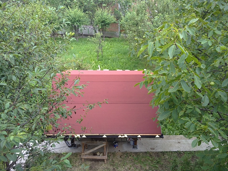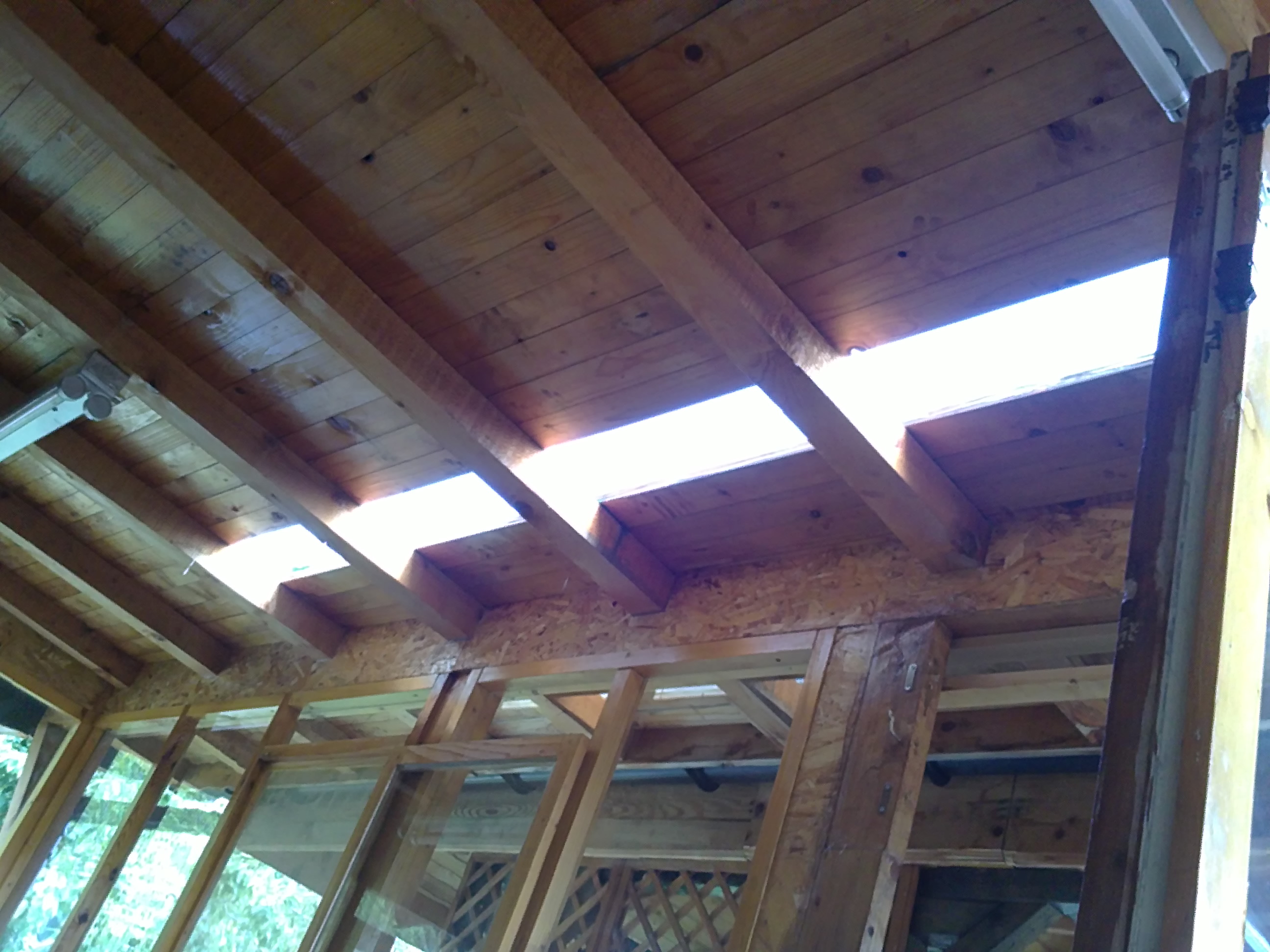 Погрома след ремонта на другия навес-две изгнили дюшемета по 4м и част от челната дъска -всичко дойде от келявата ламарина от печатни плаки, които сложих през 2007 година. Покрих и него с посипката.