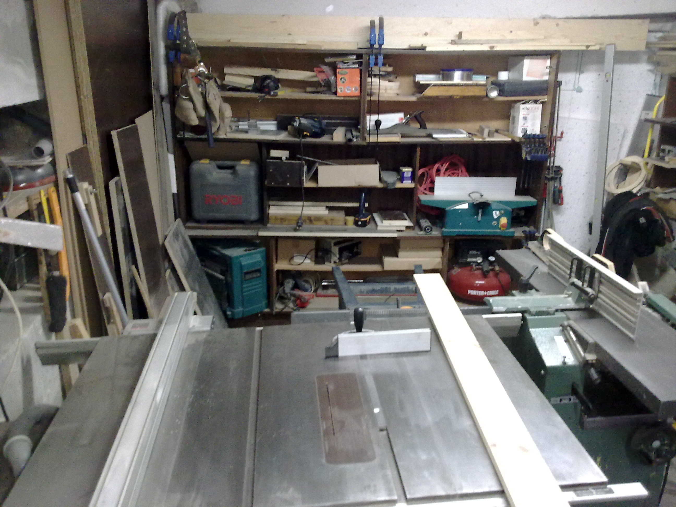 Грифин, зад абрихта има 1,50 м., не е проблем да се заобикаля. Калориферът е добра идея, ама засега съм така. Не написах по-горе, но налепих на вратата на гаража (която е зад големия шкаф в дъното) 5 см. стиропор. Надявам се сега да е по-топло, защото вратата се беше разсъхнала, имаше дупки по един пръст и духаше много.