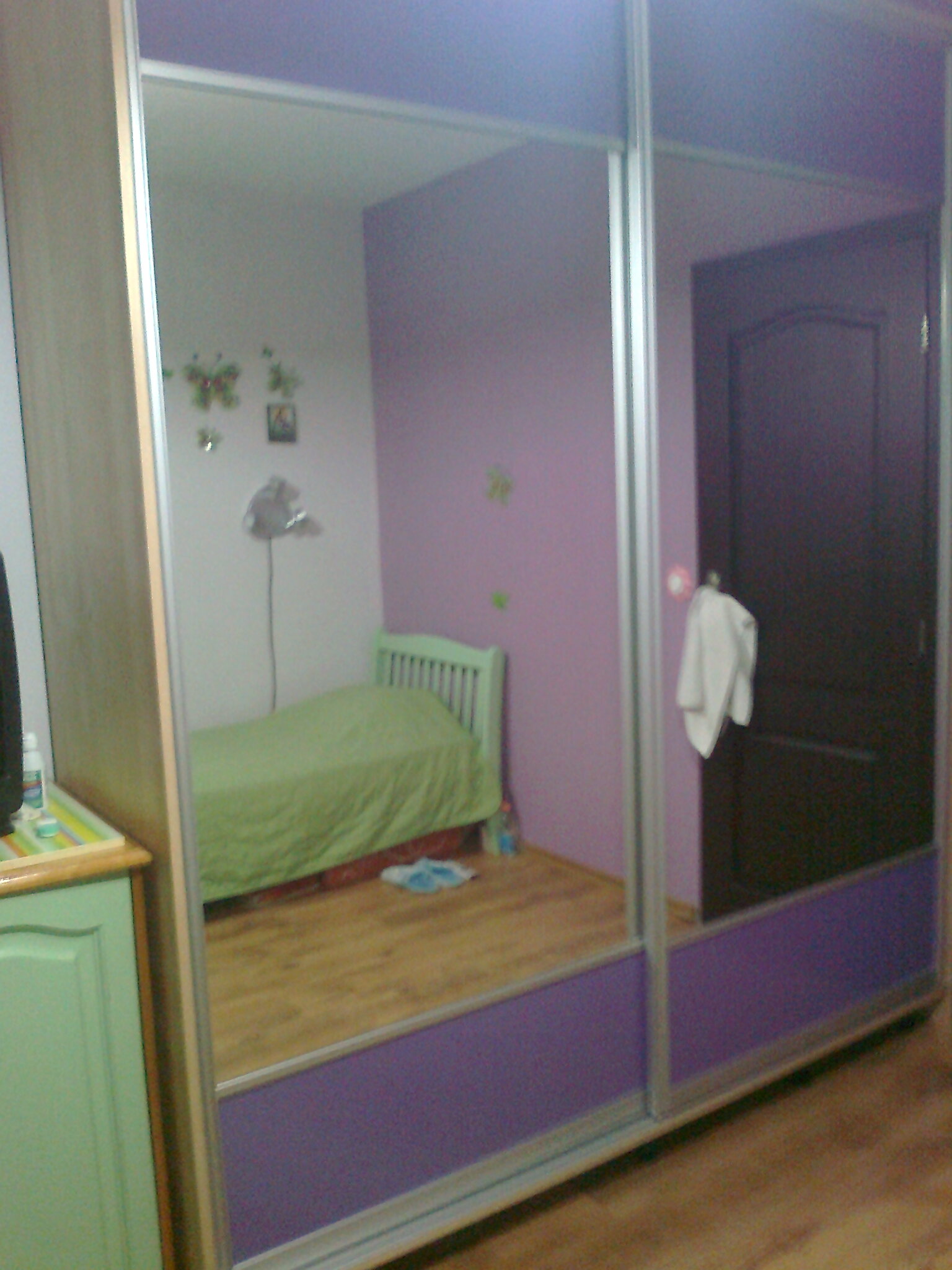 .Като стана въпрос ,на какво ти намирисва вратичката от ляво на гардероба също така и интериорната врата с буфера на дръжката,няма кой да ми монтира истински на пода за това съм с хавлия