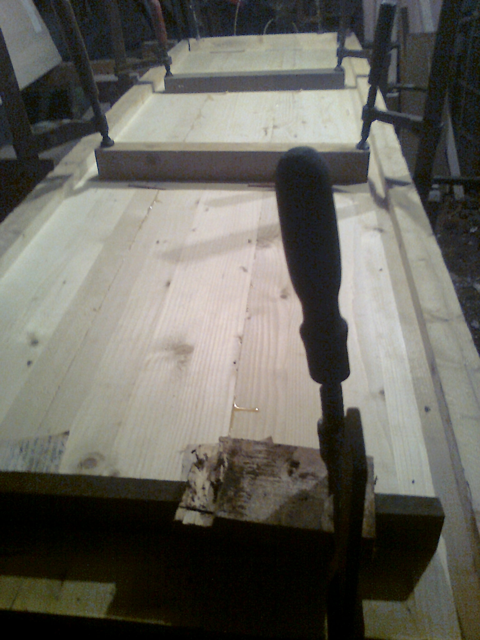 След неприятна случка преди четири месеца мислех да захвърля любимото хоби,но поради необходимост от нов гардероб за детето ,а и поради факта че бях започнал да лепя дъски за корпуса му доста преди да загубя голяма част от машинния си парк така да се каже, реших да довърша започнатото. Корпуса на гардероба е от кофражни дъски които останаха от строежа на работилницата ми миналата година,затова и ползвам тази тема.Нямам снимки по време на работа само една като лепих отделните детайли.