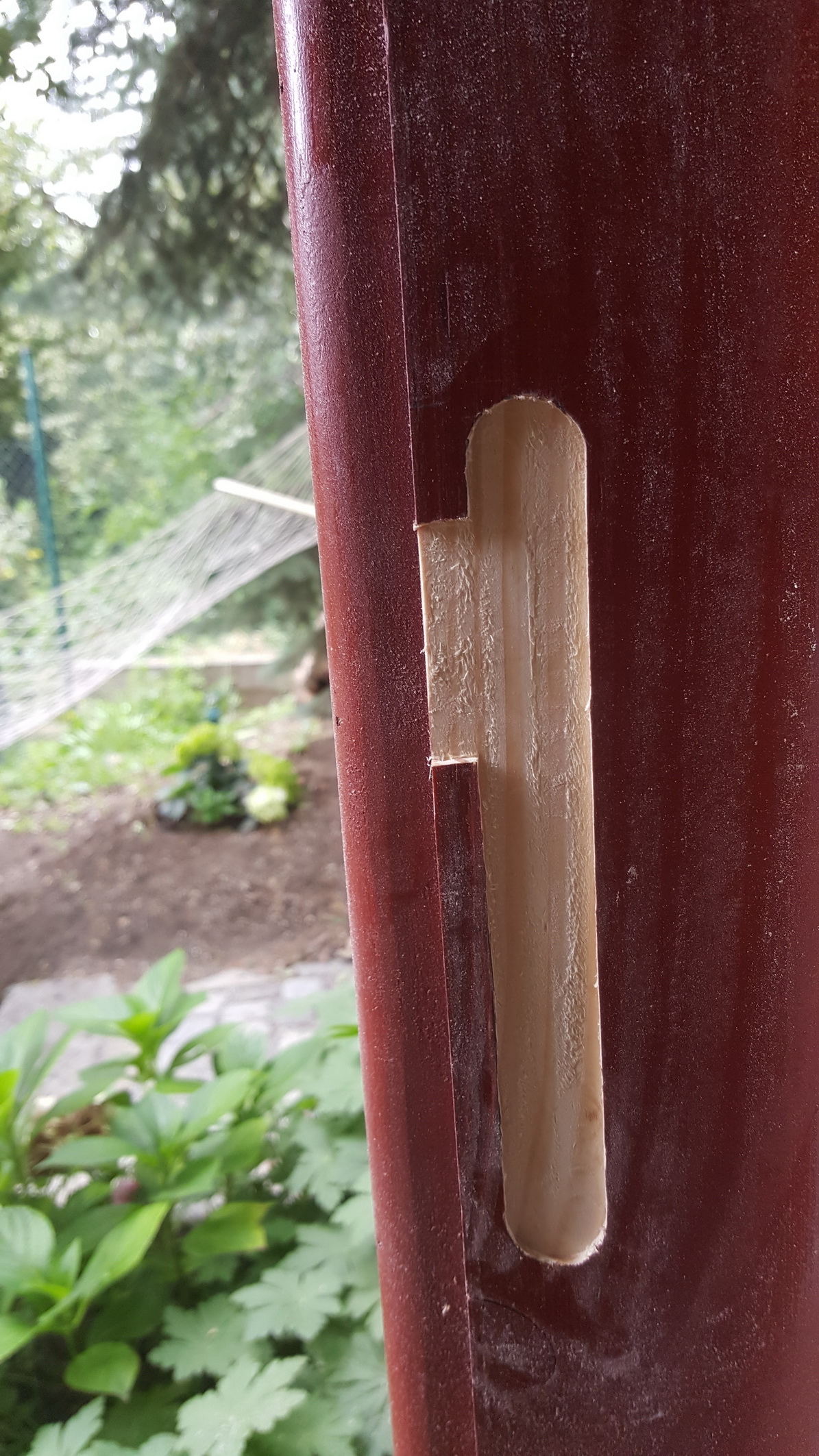 Хайде и аз да покажа първата си врата за едно складче за градински инструменти под стълбите: