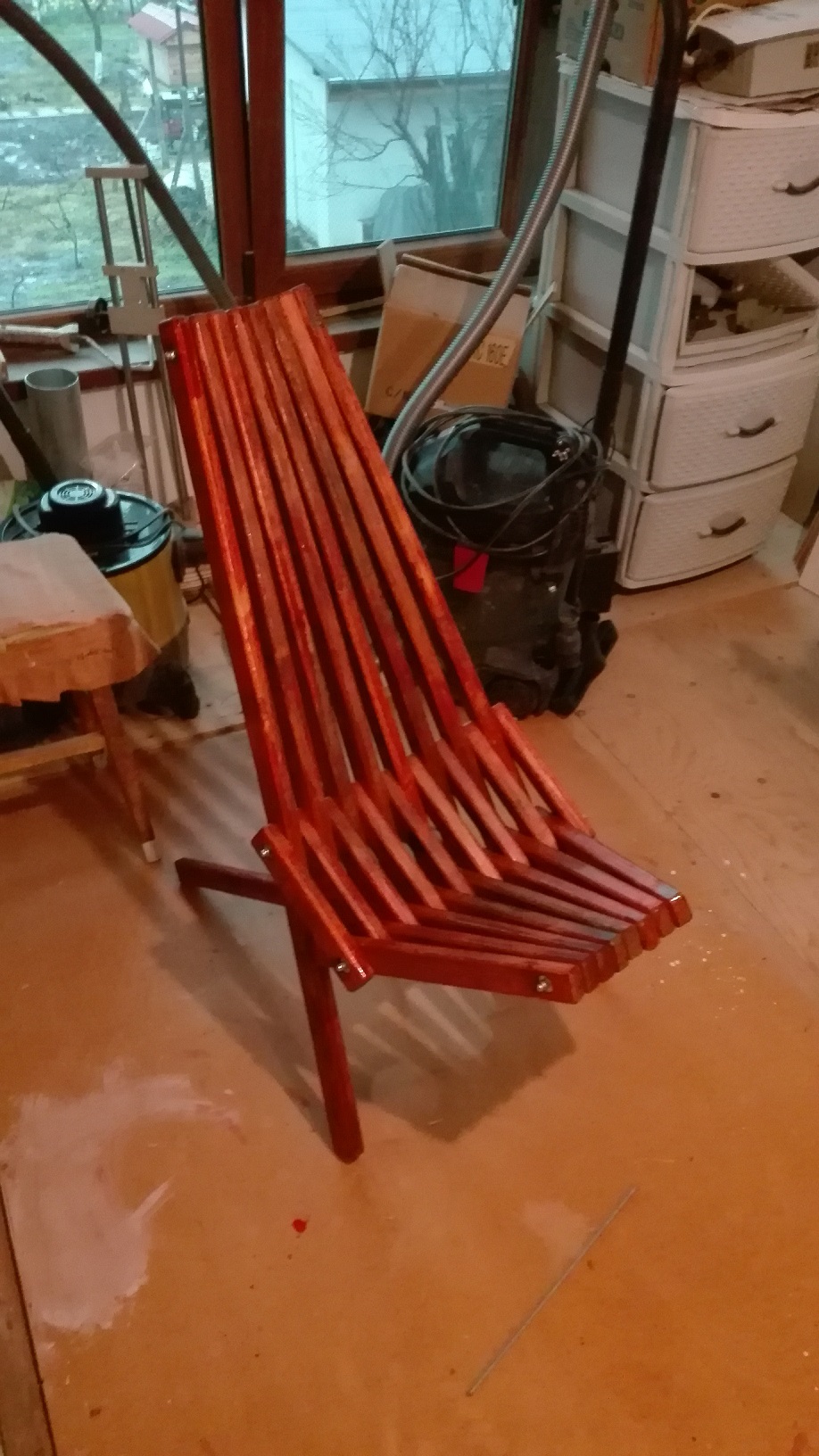 10-ина стари кофражни дъски. Няколко пъти вече ги преподреждах и на последното чистене на работилницата реших да ги вкарам в употреба. Не съм открил топлата вода. Чертежи и размери има в нета. Тези специално са от един руски сайт и трябваше да са от 3х4 см, но при мен станаха от 3х2,5 см. Вече двама приятели ми правят неприлични предложения за тези столове, ама си е цял ден играчка.