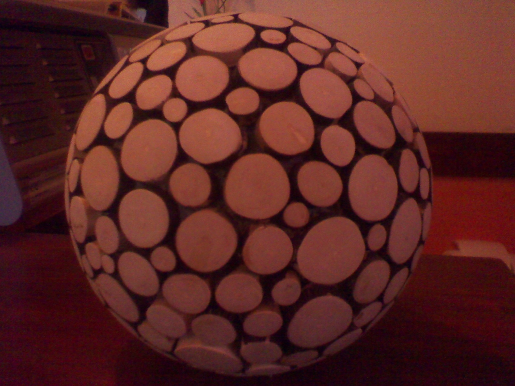 първото, което ми идва на ума е: топка с налепени дървени цилиндърчета с еднаква дължина
