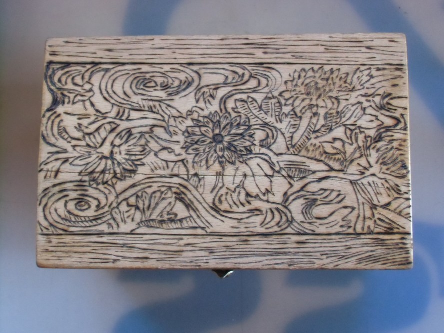 Аз се опитвам ,но само по ръбовете на няколко дървени кутийки съм правил,сега зимата ,като не може да се работи на вън ,ще продължа.Намислил съм и да си направя няколко различни нагревателя с различни форми,но все не остава време за сега.Пирографа ми го подариха преди два месеца,съветски с два еднакви нагревателя ,единия на пирографа,другия резерва .По натам като почна да работя ,ще покажа и по някоя снимка.