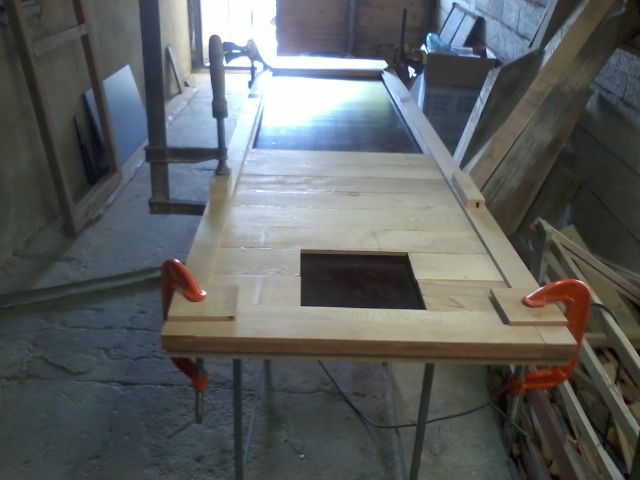 . За тази цел, реших до половината да е плътен, за това и се оказа, че трябва да е дървен ( поне според моите познания ). Имах едни останали букови дъски 8 мм и започна голямото лепене ( може би 10-12 пъти съм стягал елементите с лепило, защото не разполагам с много стеги и достатъчно голям плот в една равнина), което отне може би 20-тина дни :