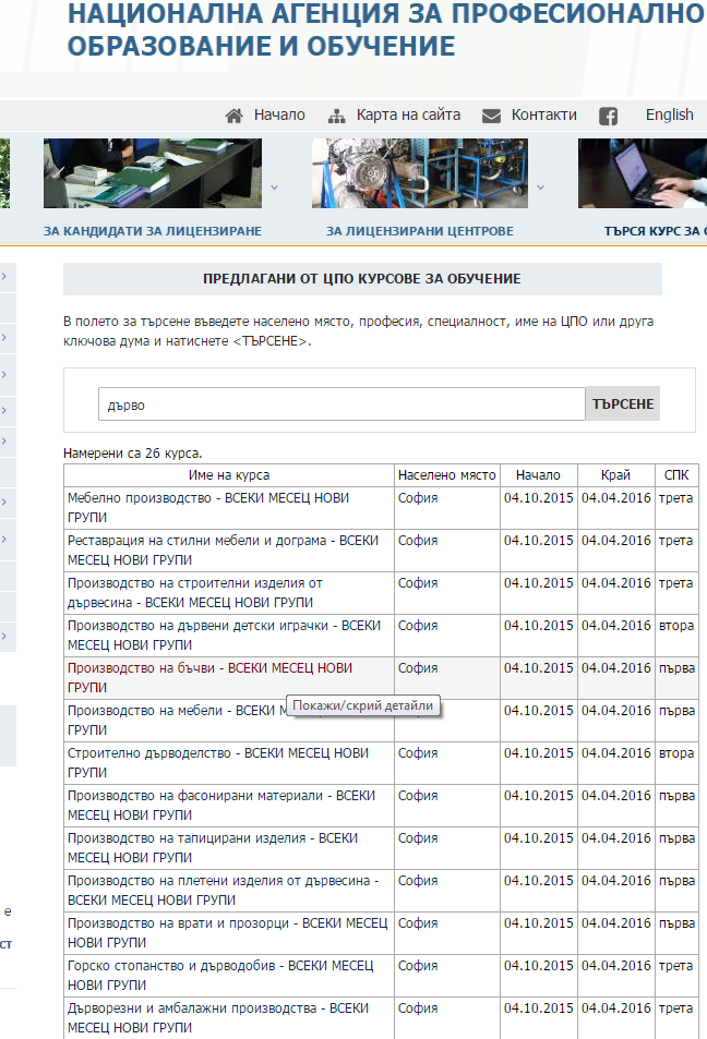 Някакви курсове за професионално обучение, клавификация или нещо подобно?