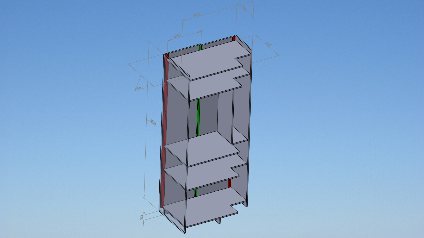 Направил съм за момента проект за гардероб в антрето. Висок 2,43м - широк 1,1 м - дълбок 65см.