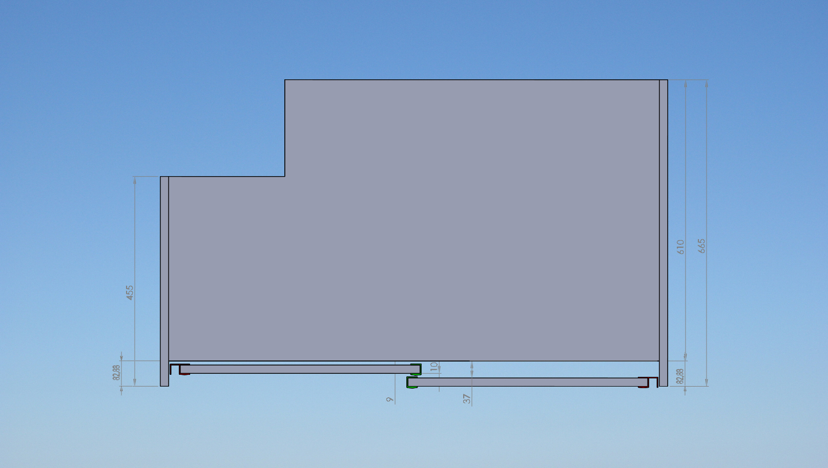 4. Понеже рафтовете са доста големи 1064мм х 610мм (просто ми трябва такова голямо чисто пространство) се чудя как да ги укрепя по дължина за да не се огънат от тежестта. Дали няма да стане да сложа пак П-образна алуминиева планка, както на вратите.
