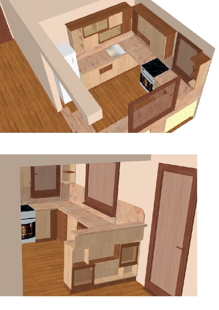 Реших да си направя мебелите в кухнята и хола, които хич не са малко. Кухнята е П- , че даже и О-образна ( ще е полупреградена от едно барче). Досега съм си правил спалня, 2 -3 етажерки и холна масичка, но сега са доста повече работи. Благодарение на колегата colyo, проектирам с PRO100 – супер user friendly програмка, с много възможности (като за аматьор). Сега сме на финала, преди да поръчам разкроя, има някои чуденки за цветове, но не и за форми. В хола са етажерка, ТВ-шкаф и секция.