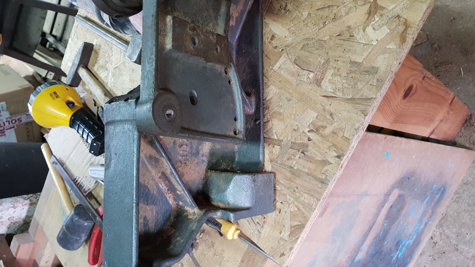 След всички перипетии пристигна, макар и с липсващи Елементи. Една част от линеала, единият водач на линеала и някой друг винт. Днес реших да започна работа по него. Първо смъкнах мотора защото имах уговорка със съфорумник да ги завъртим, защото нямам трифазен ток. Оказа се , че са строшили при транспорта единият държач на мотора :